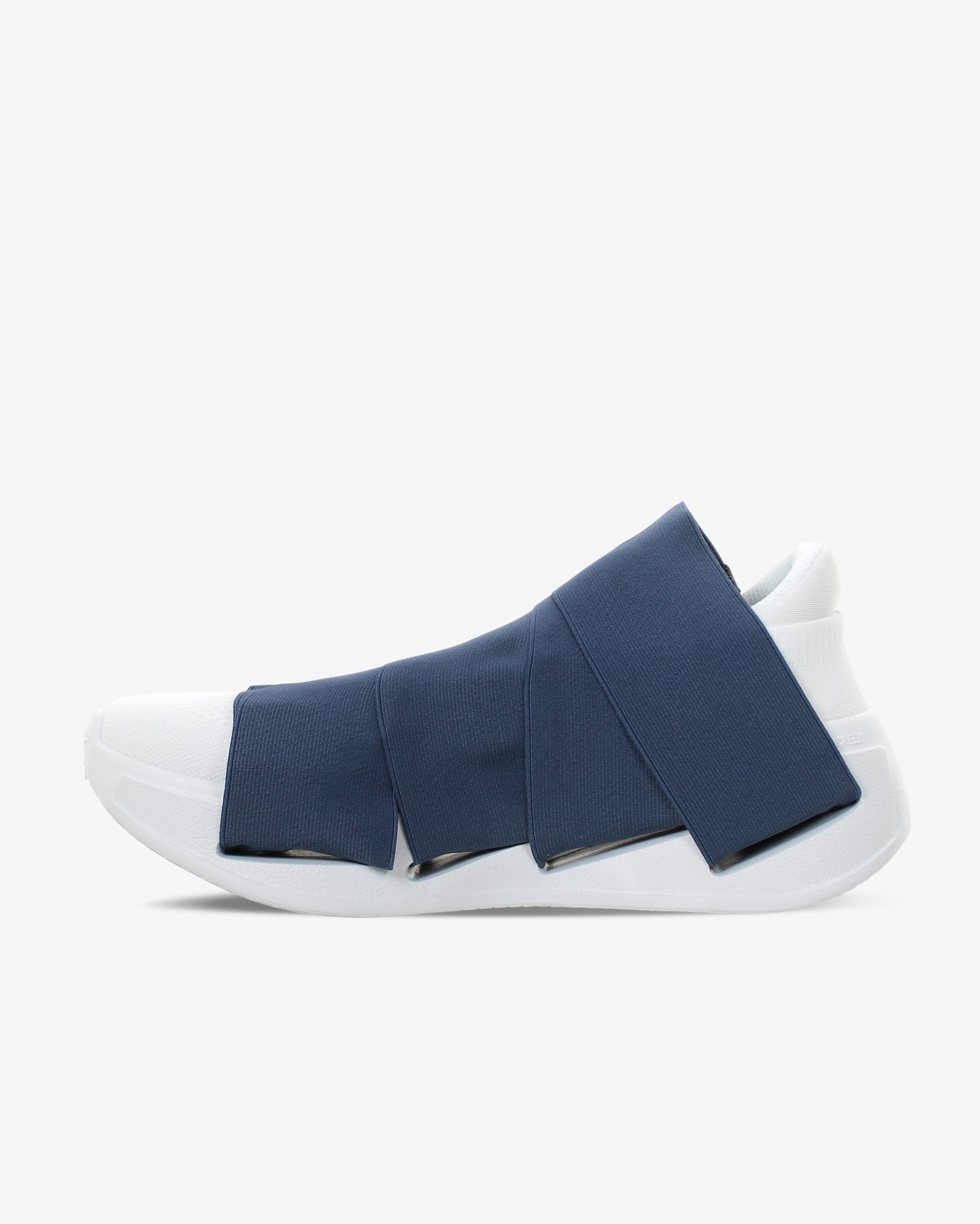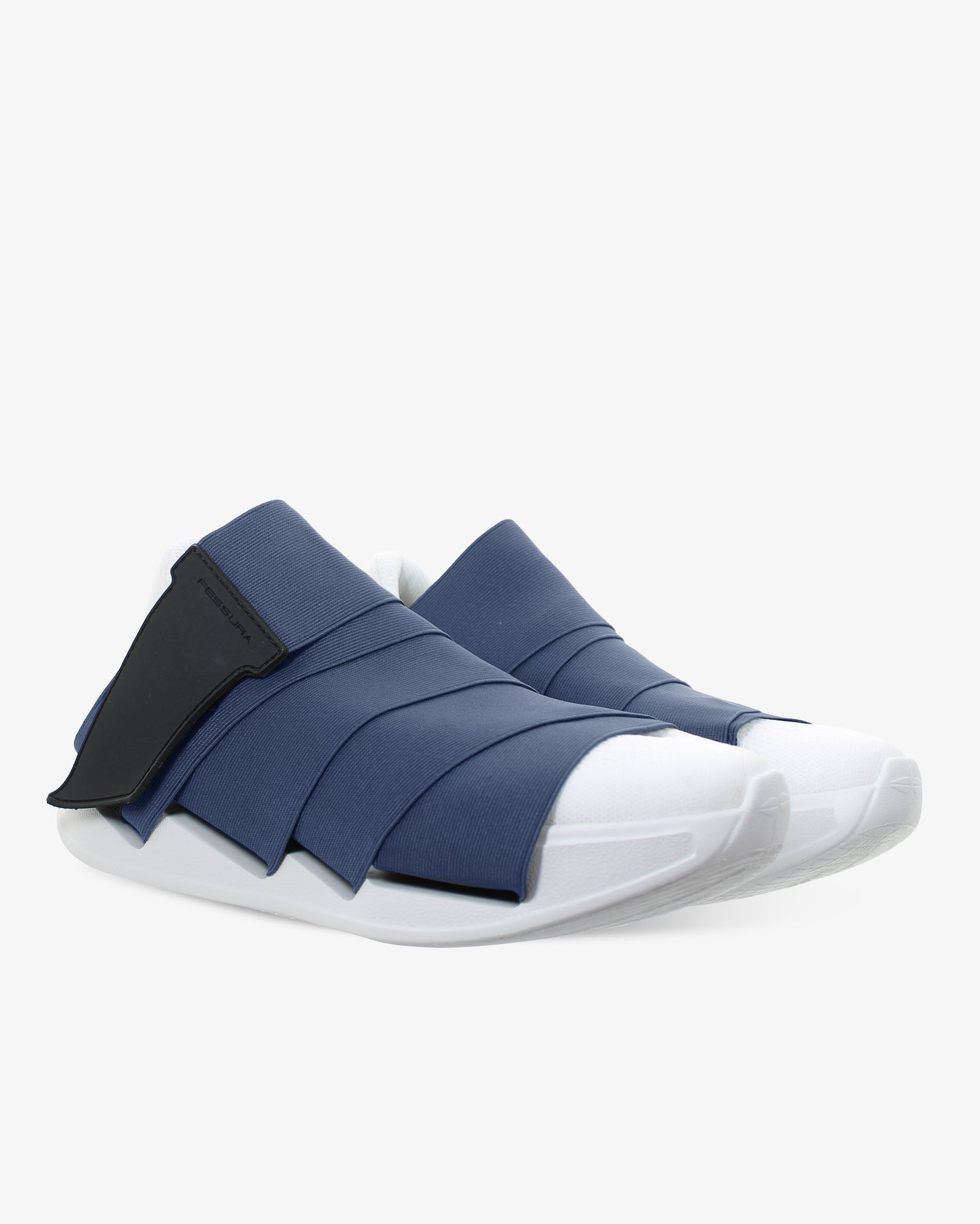 Resistant and snug navy blue elastic upper. Rubber Velcro opening and closing. The lack of an industrial assembly process reduces CO2 emissions (-50%).
