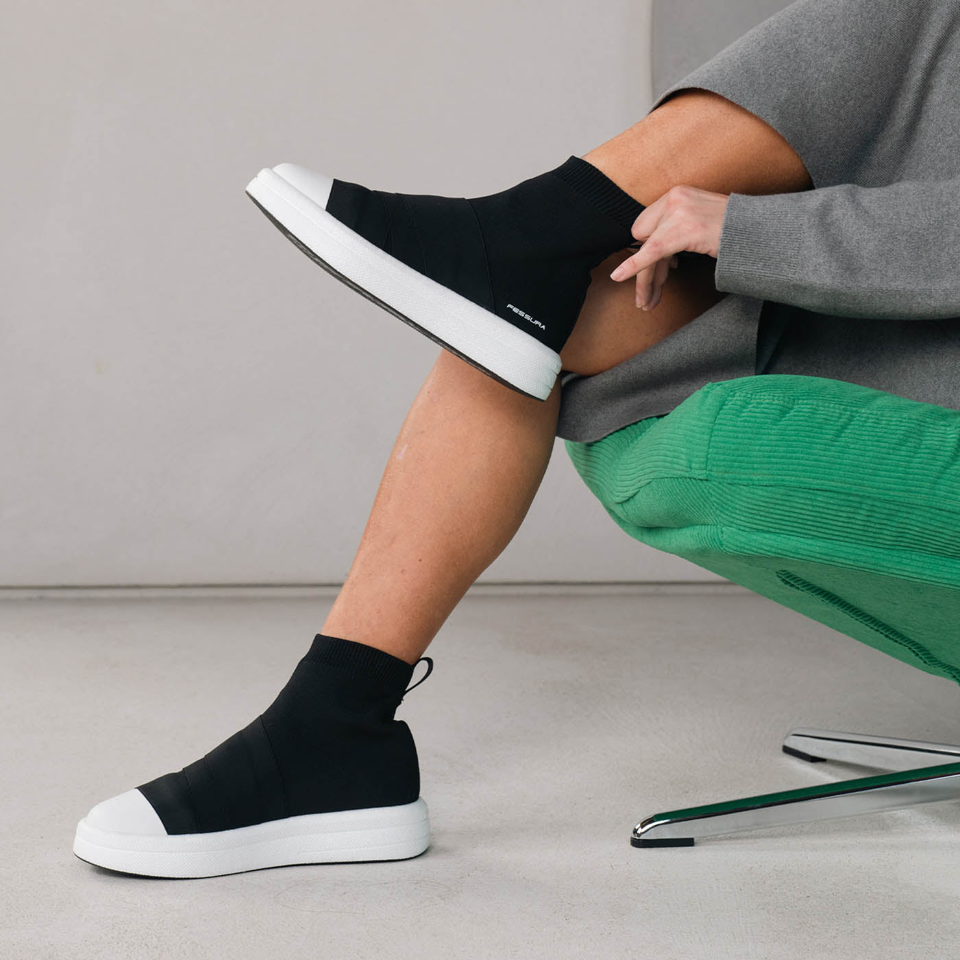 Con SOCKS, FESSURA si fa portavoce delle calzature decostruite, dando il via ad una tendenza divenuta globale, influenzando notevolmente il modo in cui vengono pensate e realizzate le sneakers. La tecnologia SOCKS effetto second skin abbraccia il piede seguendo le sue linee, unendo praticità e un nuovo sense of glamour. La tomaia può essere lavorata in un unico pezzo, riducendo notevolmente la quantità di sprechi associati alle normali tecniche di taglio e cucitura.