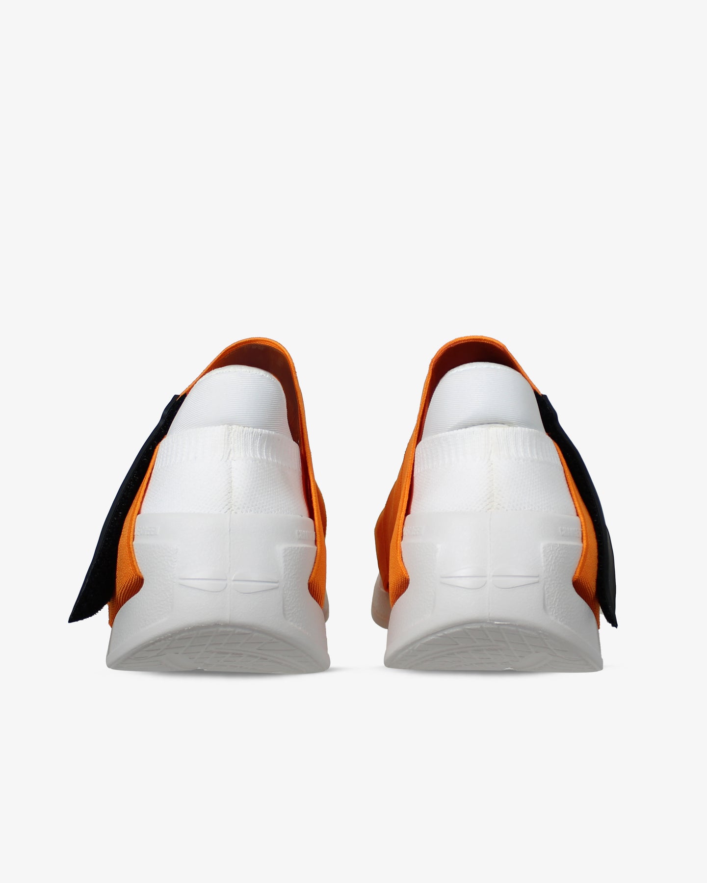 Tomaia elastica di colore arancione resistente e avvolgente. Apertura e chiusura con velcro in gomma. La mancanza del procedimento di montaggio industriale riduce l’emissione di Co2 (-50%).