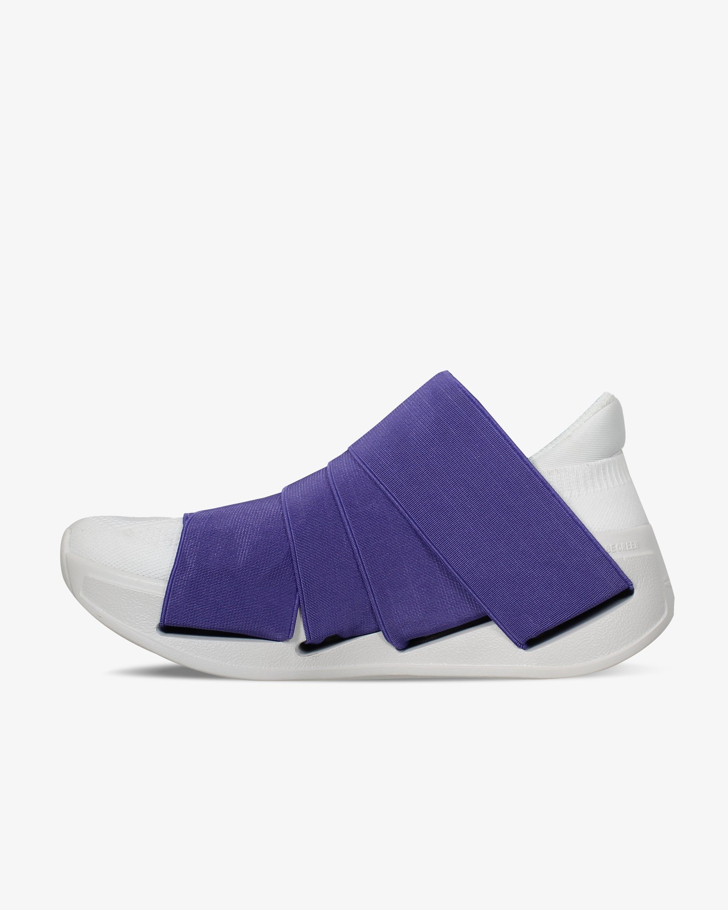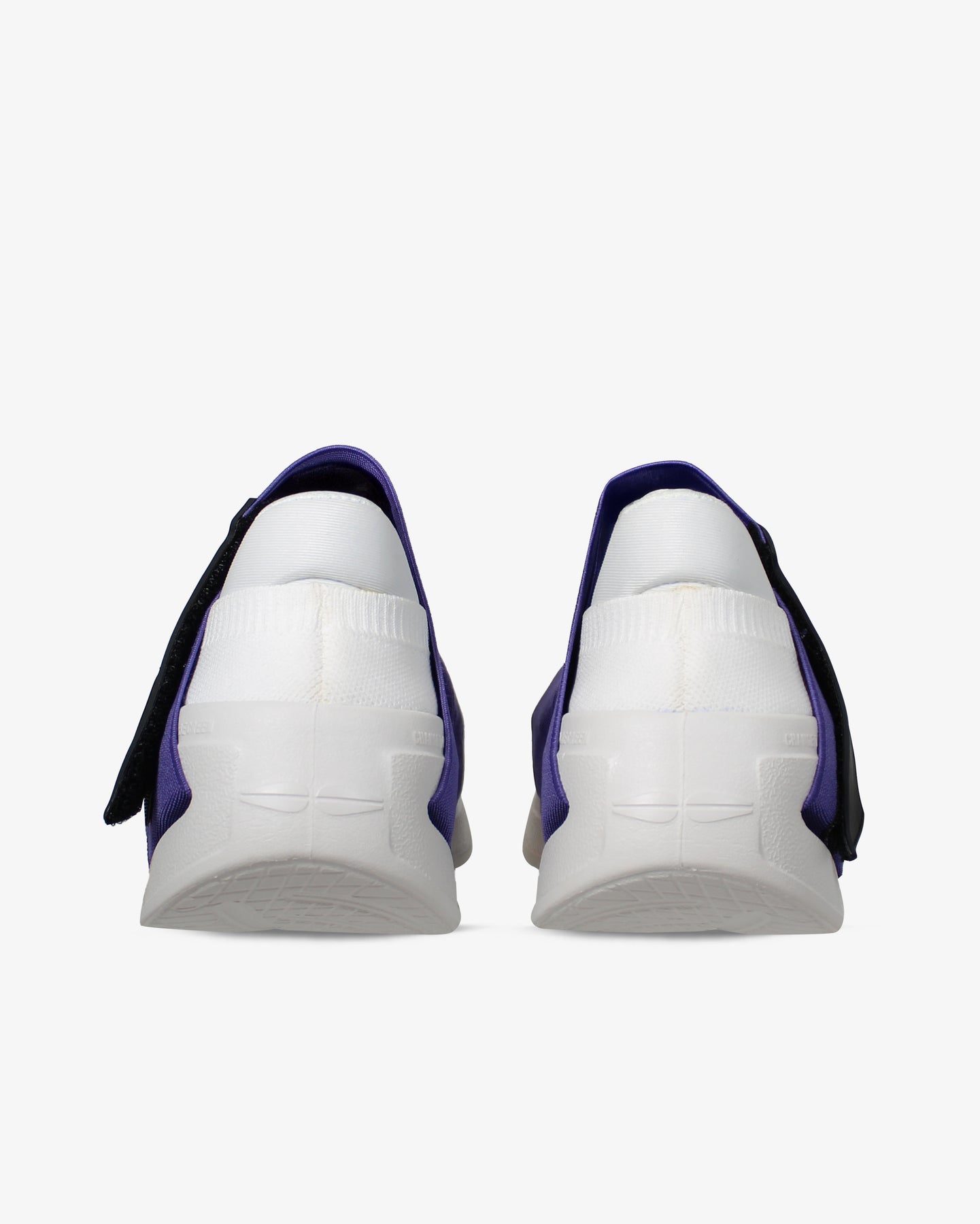 Tomaia elastica di colore viola resistente e avvolgente. Apertura e chiusura con velcro in gomma. La mancanza del procedimento di montaggio industriale riduce l’emissione di Co2 (-50%).